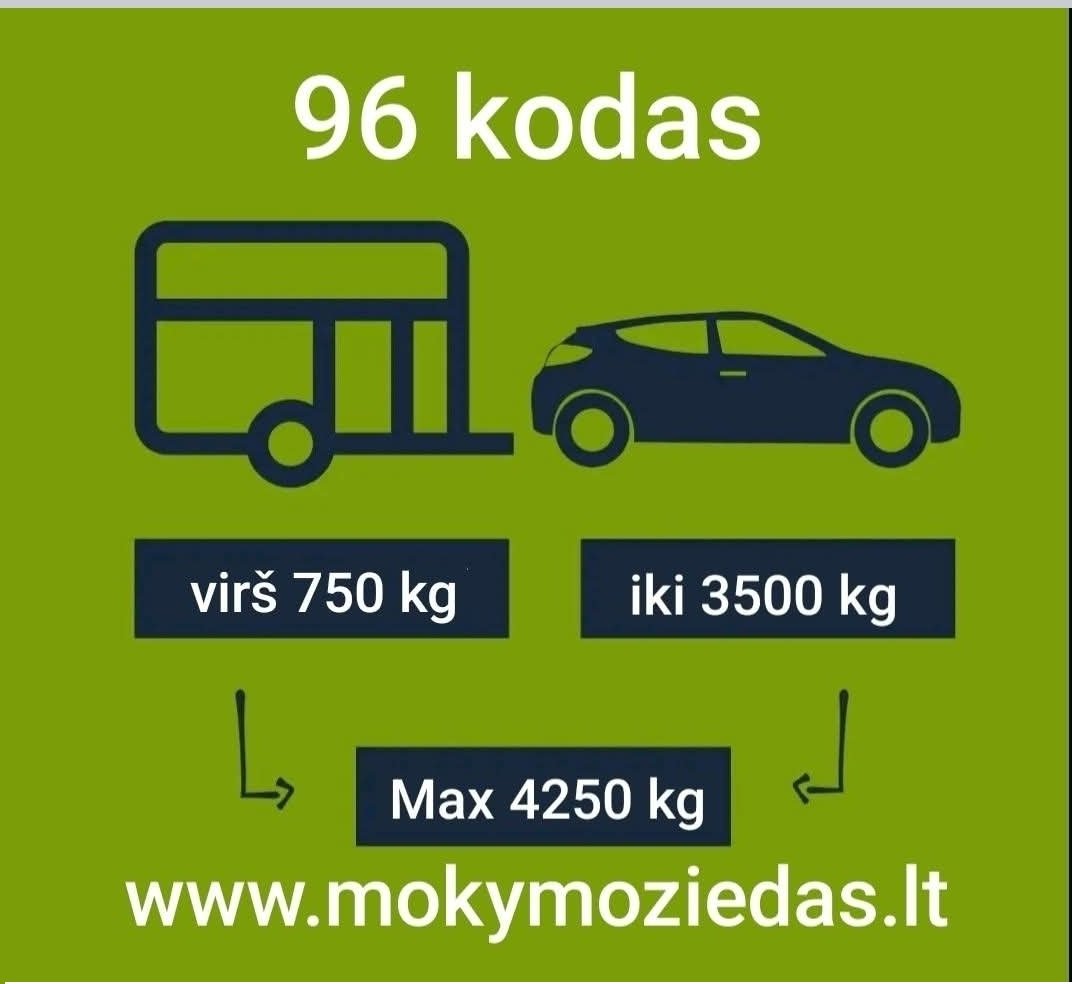 Be kategorijosBE kategorija, 96 kodas Nuo 2026 m. sausio mėn. Mažeikiuose pradedamas vykdyti BE kateg. ir 96 kodo mokymas ir egzaminavimas AB Regitra. Automatas